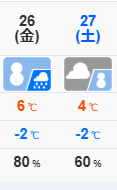 雪といえば、明日26日と明後日の27日に雪予報が発表されています。